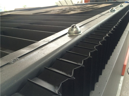 該型臺(tái)式數(shù)控切割機(jī)割臺(tái)部分采用龍門(mén)式數(shù)控切割機(jī)使用的扁鐵型割臺(tái),其結(jié)構(gòu)是用一定寬度80mm和厚度5mm的扁鐵(一般用鐵板剪切成v型結(jié)構(gòu)),相互平行排列組成。間距大小可根據(jù)常用下料板材厚度及零件大小來(lái)確定,一般為100-150mm。扁鐵在使用過(guò)程中是易損件,為便于更換,采用插入式結(jié)構(gòu)。